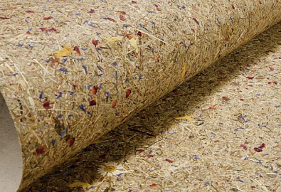 Экополотно - это натуральный отделочный материал из Австрии. в производстве которого используются настоящие альпийские растения, переплетенные между собой и склеенные биосмолой |