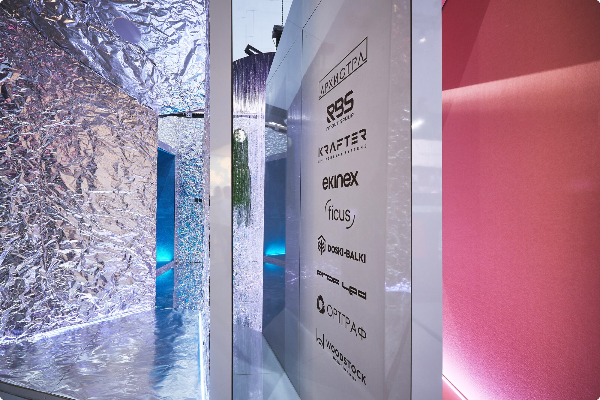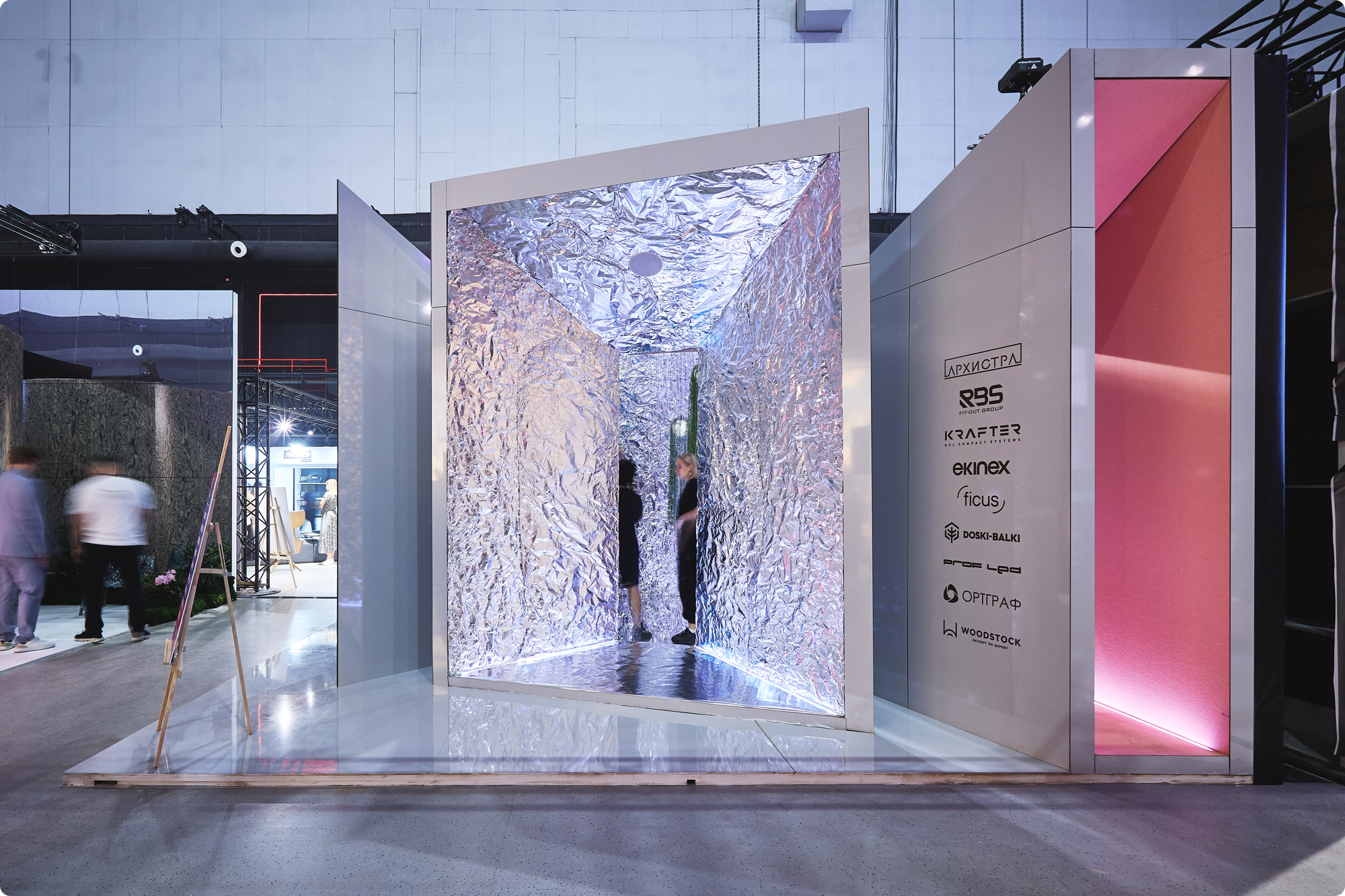 Коллаборация на стенде архитектурного бюро АРХИСТРА, в которой мы приняли участие - это 4 портала, созданных из различных материалов, где звук, свет и прикосновения сливаются в единое восприятие.