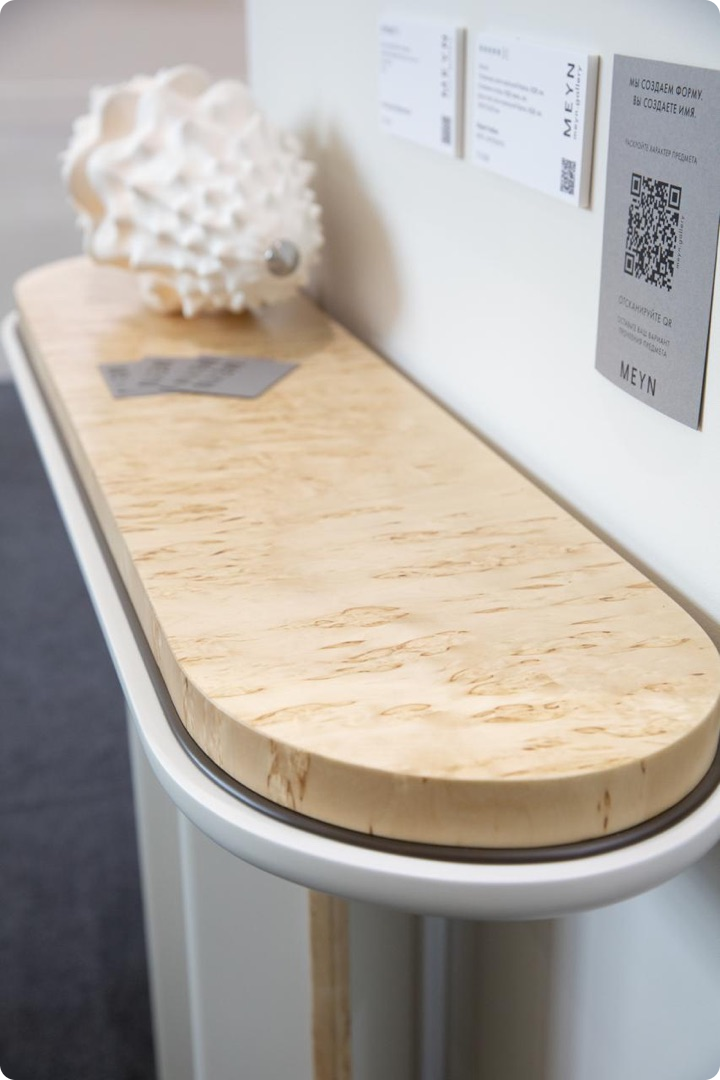 - Дизайн-шпон Клен Сикомора 09.S.088 - акцентная деталь, добавляющая глубины и пластики из которой выполнены гнутые панели