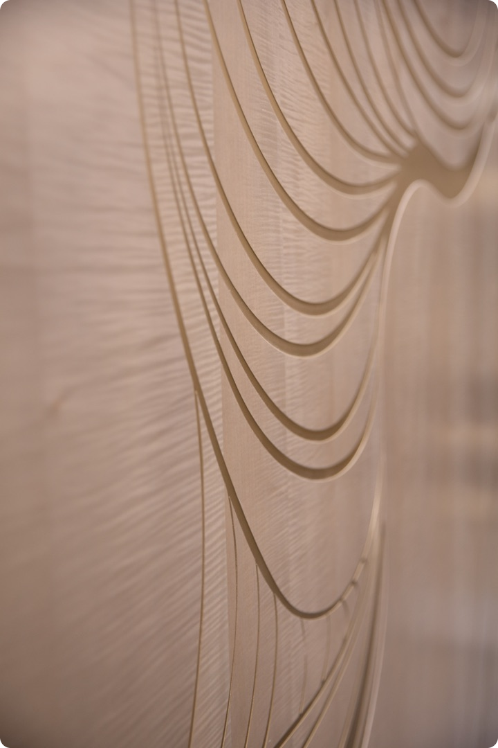 - Дизайн-шпон Клен Сикомора 09.S.088 - акцентная деталь, добавляющая глубины и пластики из которой выполнены гнутые панели