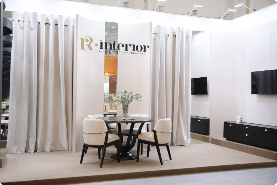 Компания НОВЫЙ ИНТЕРЬЕР представила стенд, на котором мы видим современное пространство, построенное на ощущении покоя и естественности