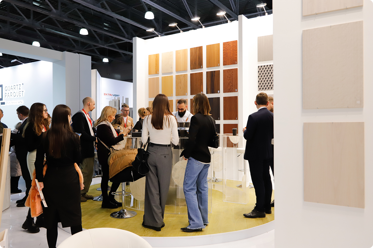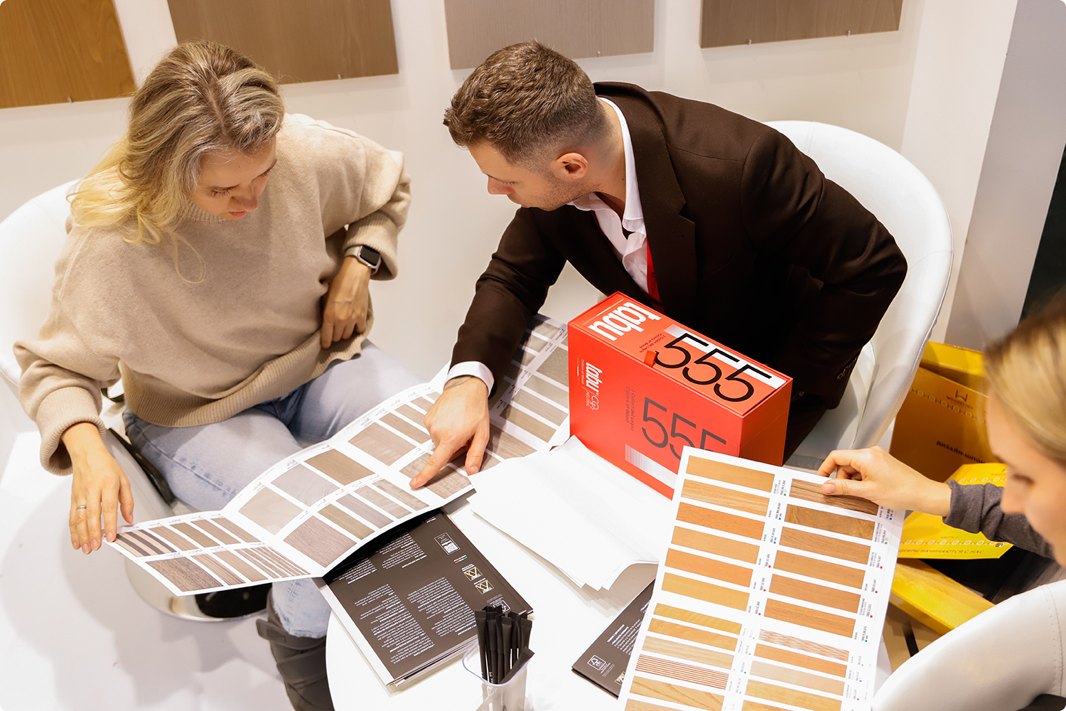 ✔️ Разные фактуры древесины можно было почувствовать буквально руками - сравнить текстуры шпона, провести ладонью по поверхности и ощутить характер каждого материала